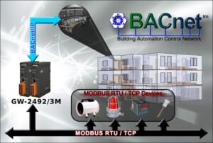 The ICP DAS GW-2493M is a network gateway that enables BACnet client devices to be accessed Modbus network as a Modbus TCP master. The BACnet/IP protocol is used to relay and exchange information between building devices.