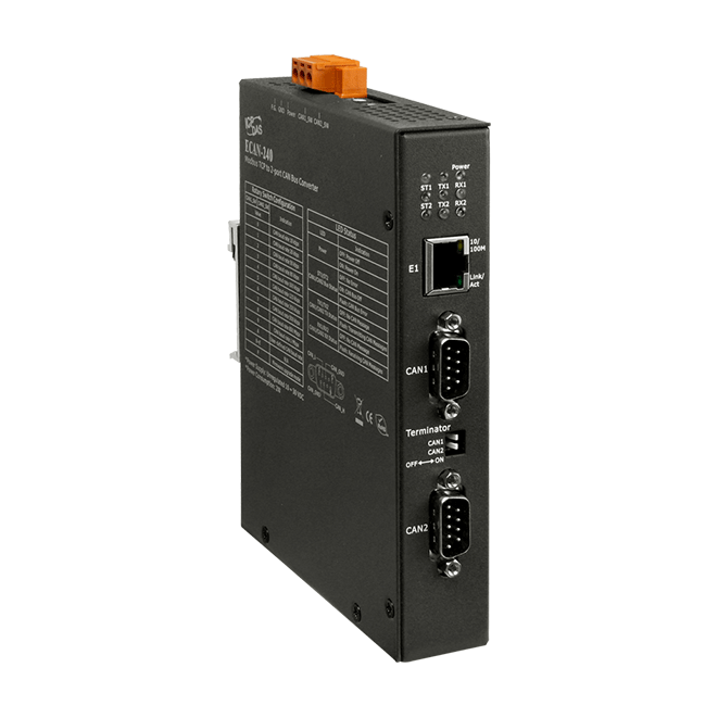 The ICP DAS ECAN-240 module is a Modbus TCP to 2-port CAN Bus Gateway. As its functionality, that provides communications via the Ethernet based on the Modbus TCP industrial protocol, which means that the module can be easily integrated with an industrial network. The ECAN-240 module includes two CAN bus interfaces, meaning that more various CAN applications can be supported, such as a CAN bridge or a CAN message router. The CAN message router function means that the ICP DAS ECAN-240 module can be used to connect to four different CAN networks, ensuring they can communicate with each other.