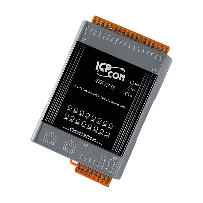 The ICP DAS ET-7253 provides 16 dry contact digital input channels. Each input channel can be used as a 32-bit counter. It features optical isolation for 3750 Vrms of transient overvoltage protection but doesn’t provide channel-to-channel isolation. It can safely be used in applications where hazardous voltages are present.