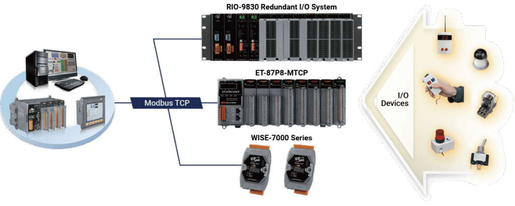 The ICP DAS RIO-9830 is a modular remote redundant I/O system designed to improve system monitoring stability and simplify maintenance. It supports Modbus/TCP communication protocol and can be easily integrated ...