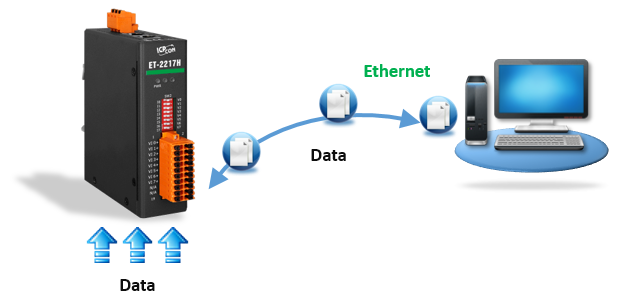 The ICP DAS ET-2217H/PET-2217H is a high-speed I/O module featuring 8 differential channels. Each analog input channel can be individually configured to one of several input ranges: ±2.5 V, 0–5 ...
