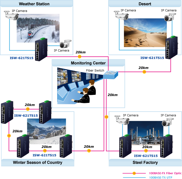 The PLANET ISW-621T and ISW-621TS15 are equipped with four 10/100Mbps ports offering auto MDI / MDIX feature, and two 100Base-FX optic-fiber SC interfaces providing 1.2Gps non-blocking switch fabric and the ...