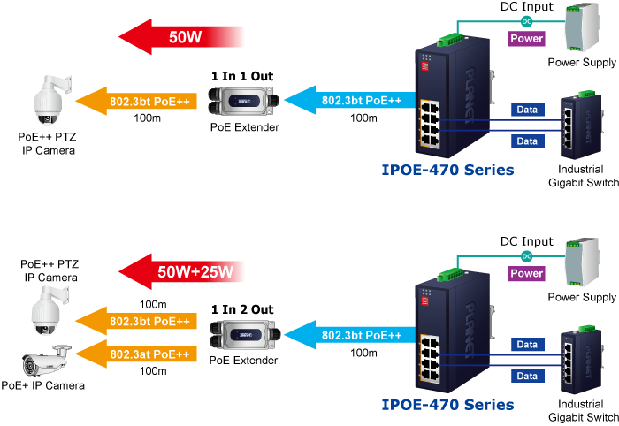 The PLANET IPOE-470-12V is an industrial IEEE 802.3bt PoE++ injector hub with four 10/100/1000/2500BASE-T 95-watt 802.3bt type-4 PoE++ injector ports. With a total PoE budget of 240 watts, it delivers ...
