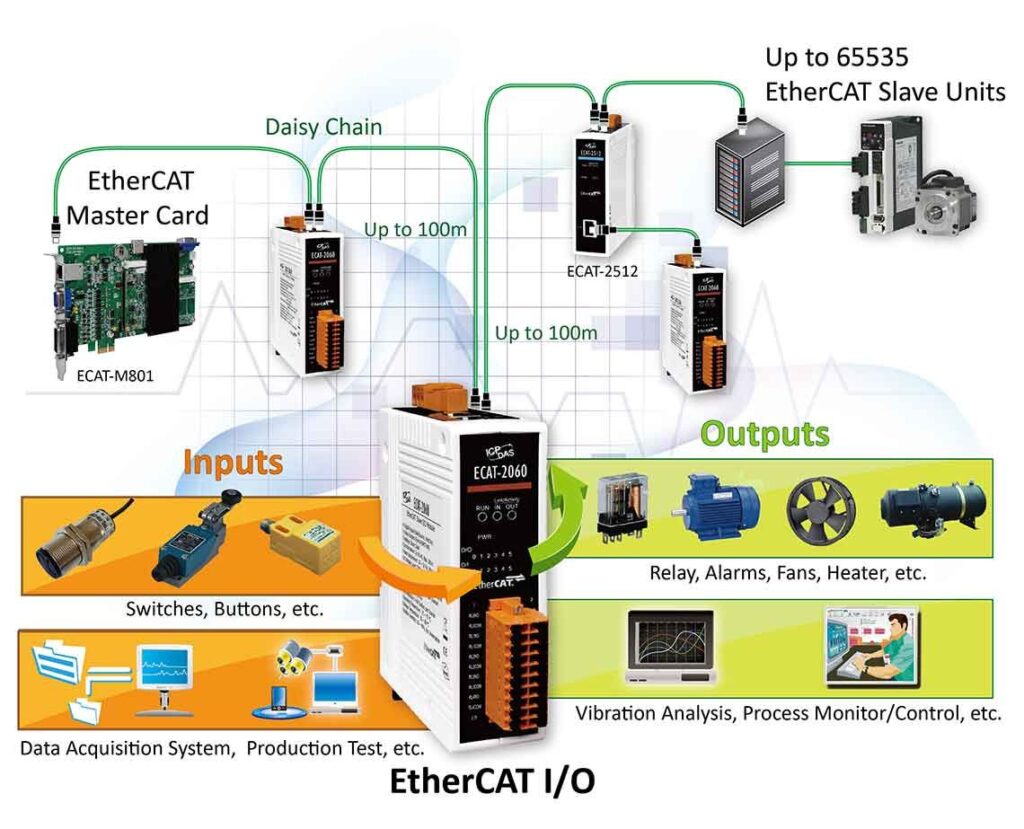 The ECAT-2000 series is proven in a variety of industrial applications including semiconductor tools, metal forming, packaging, injection moulding, assembly systems, printing machines and robotics.