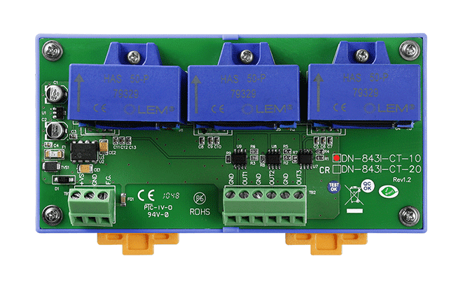 The ICP DAS DN-843I-CT series has a maximum input range from ±1 A to +/- 50 A and can be attenuated to from ±1.6 V to ±10 V.