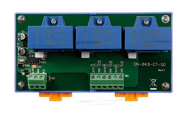 The ICP DAS DN-843I-CT series has a maximum input range from ±1 A to +/- 50 A and can be attenuated to from ±1.6 V to ±10 V.