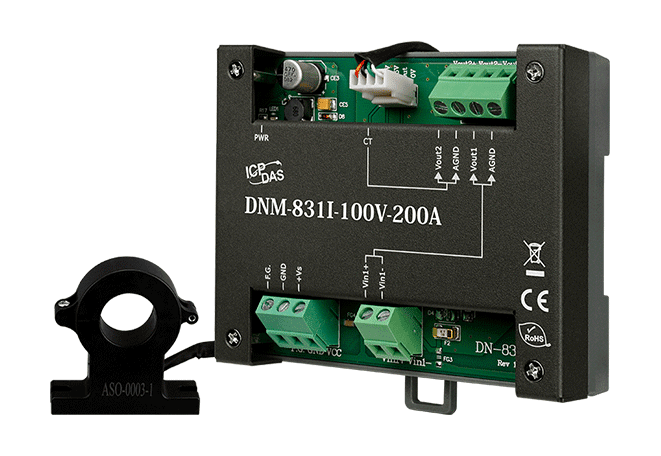 The ICP DAS DNM-831I-100V-200A is 1-channel voltage attenuator and 1-channel current transformer. The maximum voltage input range is from ±100 V can be attenuated to ±10 V and the maximum current input range is from ±200A can be attenuated to ±10 V.