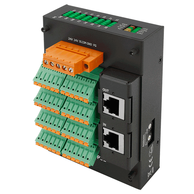 The ICP DAS EC2-P32 is an industrial slave I/O module built in 32 digital inputs. It is equipped with the EtherCAT protocol and installed by daisy chain connection that provides a more scalable system with fewer wires. Users can obtain the input and output status not only via the process data but also from its LED indicators.
