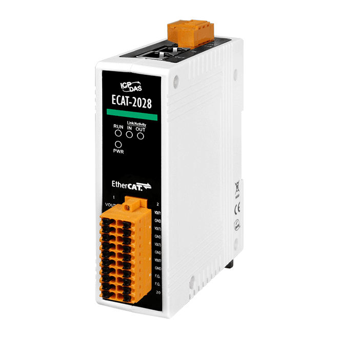 The ICP DAS ECAT-2028 is equipped with the EtherCAT protocol and installed by daisy chain connection which permits the flexibility in devices installation and reduces infrastructure and operation costs. All the modules can be deployed in the network topologies such as star, line or ring.