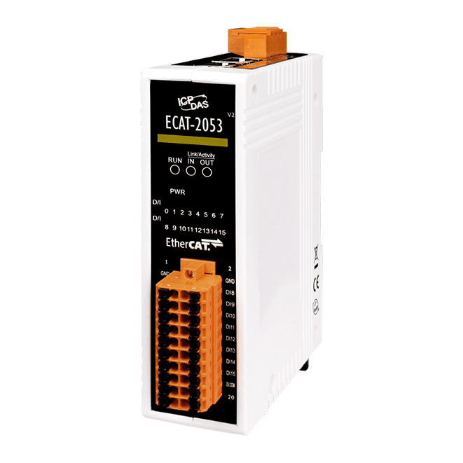 The ECAT-2053 is built in isolated 16 digital inputs. Users can obtain the input and output status not only via the process data but also from its LED indicators. It has passed and verified by the conformance test tool, therefore eligible EtherCAT Master or configurator can manipulate it simply and implement your various applications easily.