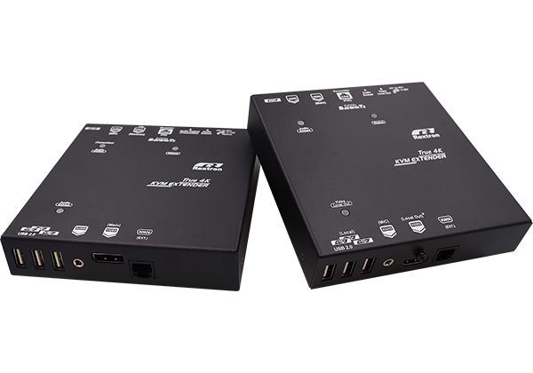 Rextron KVM Extender Bi-Directional Audio signal transmission combines the audio embedder/ extractor function can independently transmit the audio signal from the Transmitter unit to the Receiver unit, and vice versa, and can arbitrarily embed audio from a 3.5mm source to the DP signal or to extract the DP audio to a 3.5mm analogue stereo audio, which provides the second audio transmission channel that would be beneficial for the content creator in video postproduction or audio broadcasting with the installation of home cinema amplifier.