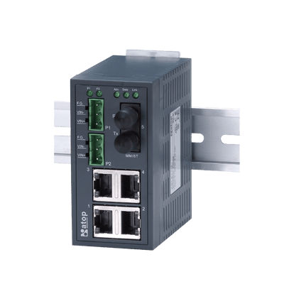 The ATOP EH2005-Fm is a 5-port industrial unmanaged Ethernet switch with 4 x RJ-45 ports and one optic ST port for your industrial applications. This switch is specifically designed to work in the industrial environment, such as in hazardous locations that comply with CE, FCC, TUV, UL and RoHS standards. The ATOP EH2005-Fm protects itself from receiving too many broadcast packets. During normal use, broadcast packets will be forwarded to all ports except the source port.