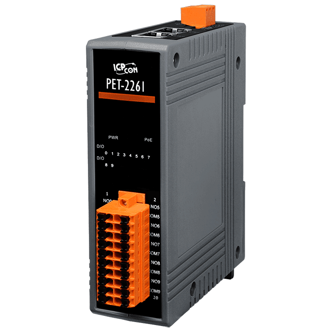 Providing various digital I/O functions, the ICP DAS PET-2261 module is an Ethernet I/O monitoring and control module. The module can be remotely controlled through a 10/100M Ethernet network by using Modbus TCP/UDP and MQTT protocols. Modbus has become a de facto standard communications protocol in industry, and is now the most commonly available means of connecting industrial electronic devices. This makes the PET-2261 module perfect integration with the HMI, SCADA, PLC and other software systems.