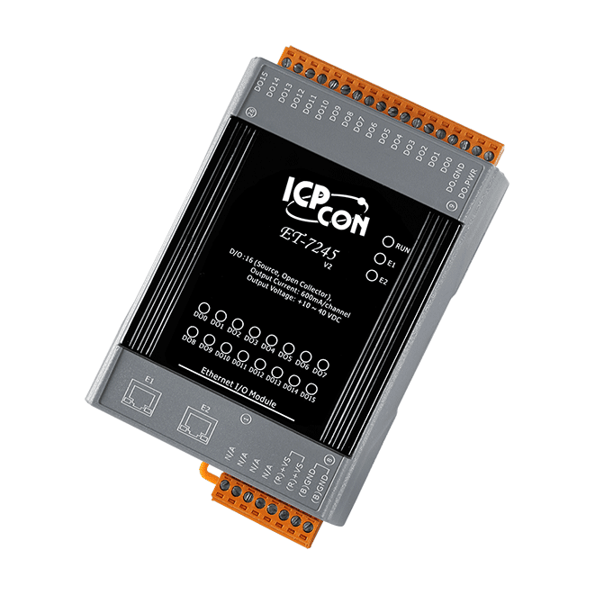 The ICP DAS ET-7245 provides 16 source-type digital output channels. It features optical isolation for 3750 VDC of transient overvoltage protection and doesn’t have channel-to-channel isolation.