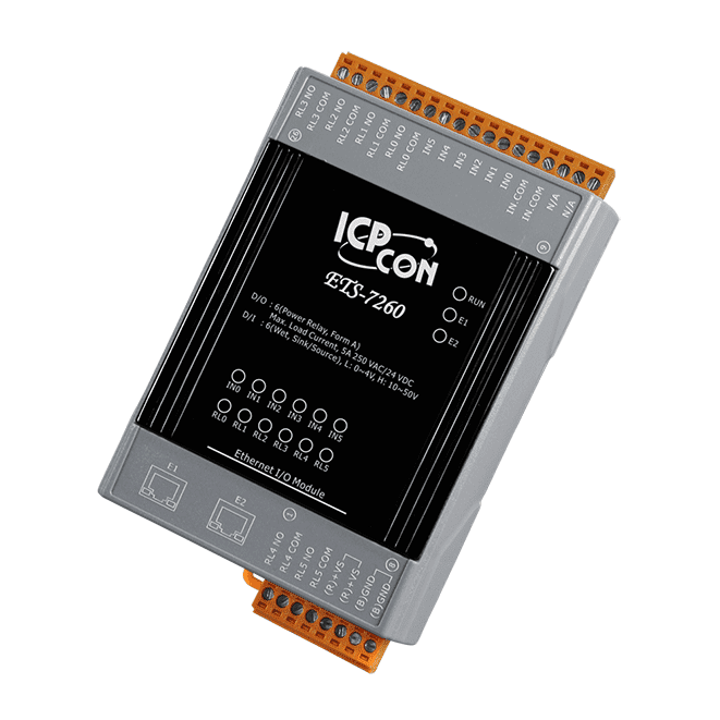 ETS-7260 Ethernet I/O Module with 2-port Ethernet Switch, 6-ch Power Relay & 6-ch DI
