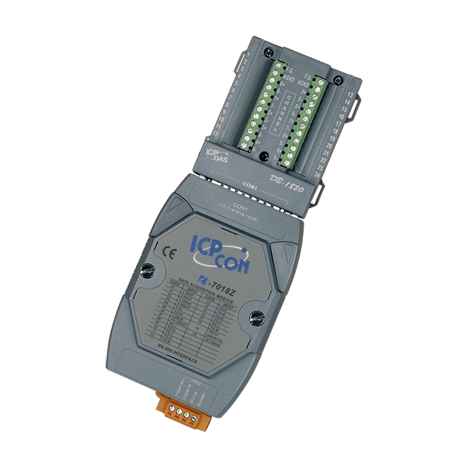 The ICP DAS I-7018Z/M-7018Z is a 10-channel universal Analog Input module with an RS-485 interface that is especially designed for extremely accurate thermocouple measurement and features automatic cold-junction compensation for each channel to ensure temperature output consistency and stable temperature output in the field. The innovative design of the enhanced model ensures that thermocouple measurement is more accurate than with the earlier design.