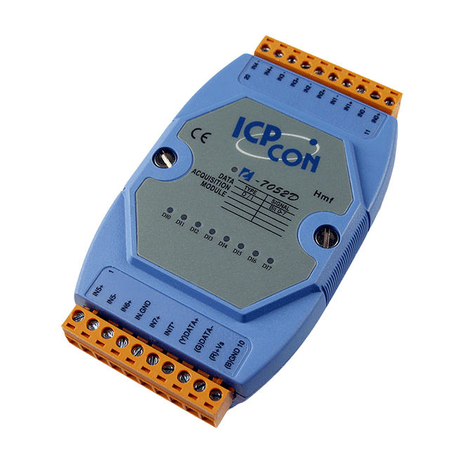 The ICP DAS I-7052 offers 6 fully independent channels and 2 common ground channels for digital input. The diffential inputs feature channel-to-isolation. In addition, you can choose either sink- or source-type input via wire connections. All channels are able to be used as 16-bit has 8 LED indicators for DI channel status monitoring. 4 kV ESD protection and 5000 Vrms intra-module isolation are standard. The M-7052 has the same hardware specifications as the I-7052, but provides additional support for the Modbus RTU protocol as well as the DCON protocol.