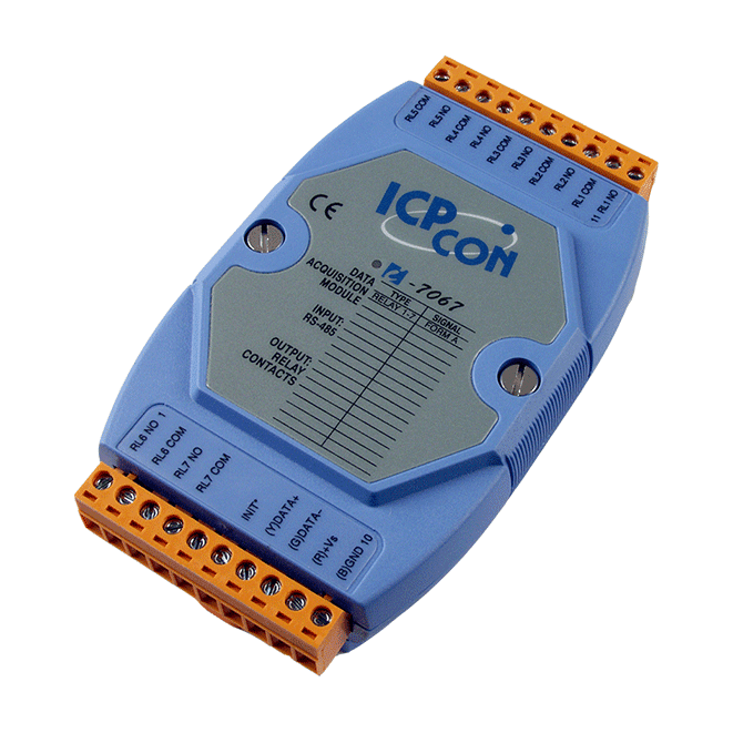 The ICP DAS I-7067 series provides 7 signal relay output channels. There are options for configuring power-on and safe values. 4 kV ESD protection and 3750 VDC intra-module isolation are also provided to enhance the noise protection capabilities in industrial environment. The “D” versions of the 7061 series provide 12 LED indicators and the “D” versions of the 7067 series provide 7 LED indicators that can be used to monitor the status of the relay output channels.