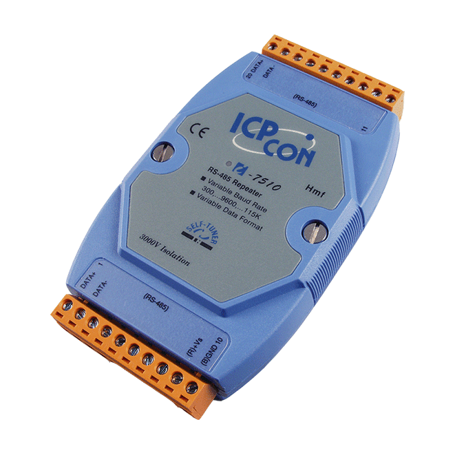 The ICP DAS I-7510 provides 2-way optical isolation between one piece of RS-485 equipment and the rest of the system. It can also be used as a repeater to extend the transmission of an existing network. Additionally, an RS-485 system can be expanded beyond the 256 node limitation imposed by the standard. It can also be used to convert a 2-wire RS-485 signal, and vice versa.