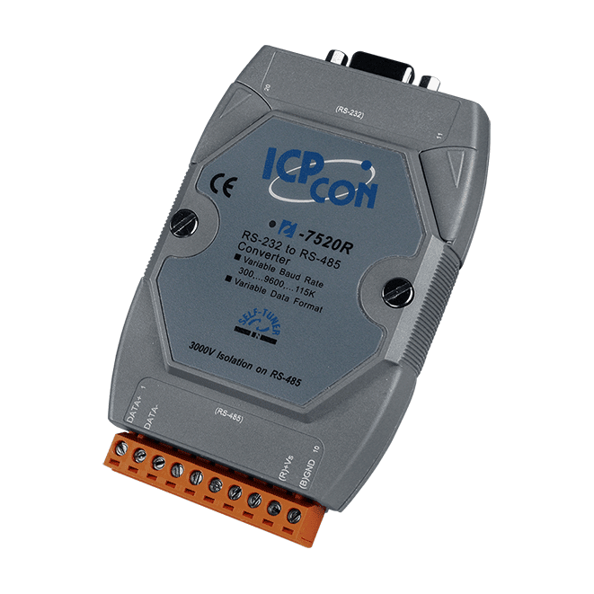 Most industrial computer systems provide standard RS-232 serial ports. Though widely accepted, RS-232 has limited transmission speed, range, and networking capabilities. The RS-485 standards overcome these limitations by using differential voltage lines for data and control signals, which transparently converts RS-232 signals into isolated RS-485 signal with no need to change any hardware or software. The ICP DAS I-7520 lets you easily build an industrial grade, long-distance communication system using standard PC hardware.