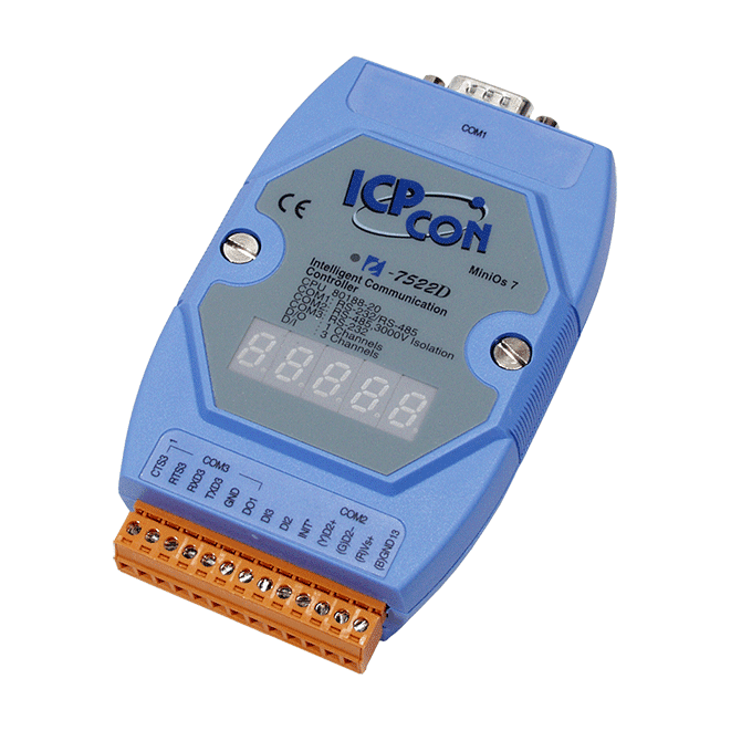 I-7522D Addressable RS-485 to 2 x RS-232/RS-485 Converter with 2 DI, 1 DO & 7-Segment LED Display