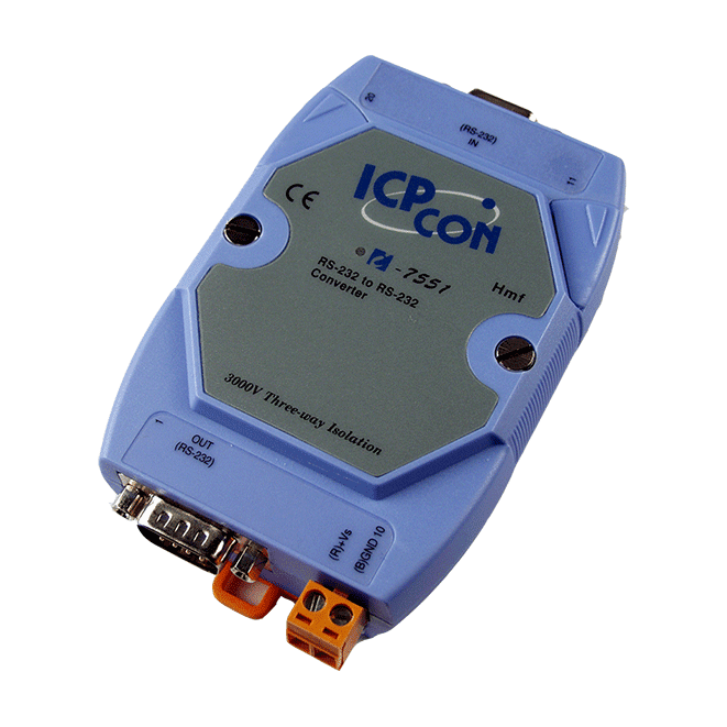 The ICP DAS I-7551 Photo-coupler provides a complete full-duplex (including control signal) electrical isolation channel between two RS-232 devices. This isolation is an important consideration if a system uses different power sources, has noisy signals, or must operate at different ground potentials.