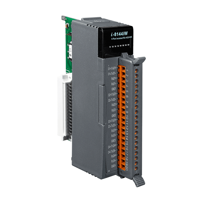 The ICP DAS I-8142iW-G provides 2 isolated RS-422/485 serial ports, while the I-8144iW-G provides 4 isolated RS-422/485 serial ports. It is equipped with a 128-byte hardware FIFO for each port and offers speeds up to 115.2 kbps with support for RS-422 full-duplex communication.