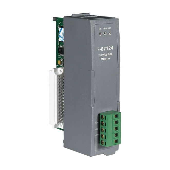 The CAN (Controller Area Network) is a serial communication protocol, and efficiently supports distributed real-time control with a very high level of security. It is an especially suit for networking “intelligent” devices as well as sensors and actuators within a system or sub-system. In CAN network, there is no addressing of subscribers or stations in the conventional sense, but instead prioritized messages are transmitted. As standalone CAN controller, the ICP DAS I-87124 can represent an economic solution of DeviceNet application and be a DeviceNet master device in the CAN bus on the DeviceNet network. It is a “Predefined Master connection Set”, and supports Group 2 only Server functions to communication with slave devices. It has a independent CAN bus communication port with 5-pin screw terminal connector, and has the ability to cover a wide range of DeviceNet applications. Besides, I-87124 uses the CAN controller Phillips SJA1000T and transceiver 82C250, which provide bus arbitration, error detection with auto correction and re-transmission function. It can be installed in WinPAC or ViewPAC series PAC.It is popularly applied in the industrial automation, building automation,vehicle, marine, and embedded control network. In order to expand the DeviceNet functions of ICPDAS products, I-87124 module is developed for this purpose.