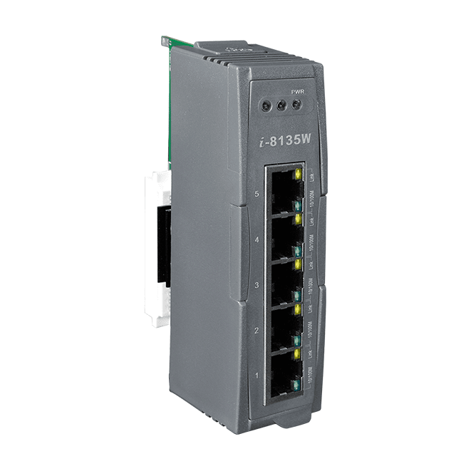 The ICP DAS I-8135W is a flexible and high performance five-port Ethernet switch module. It can be installed in PAC (XPAC, WinPAC, LinPAC, iPAC & ViewPAC) and directly gets power from the back-plane. An extra power adapter for an Ethernet switch is not need any more. In your PAC solutions, if you want to expand Ethernet connection, ICP DAS I-8135W is good to replace regular Ethernet switch to save installation space and power adapter.