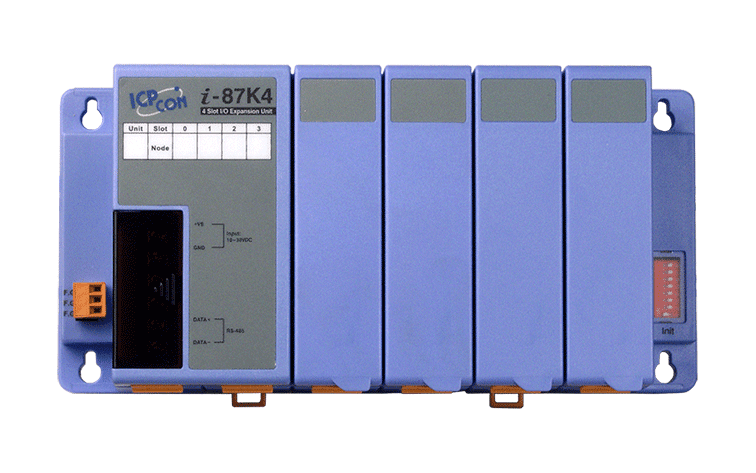 The ICP DAS I-87K4-G is a 4 slot I/O expansion unit to expand I/O via the RS-485. It is designed to be used in harsh and noisy environment, so the hardware is manufactured with wide power input range (10 ~ 30 VDC), isolated power input and can operate under wide temperature (-25 ~ +75 °C). To simplify installation and maintenance of I/O modules.