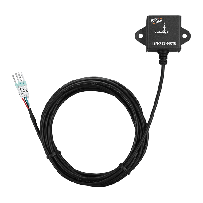 The ICP DAS iSN-713-MRTU module is a three-axis vibration detection device. It has a built-in MEMS accelerometer, so it can easily realize equipment vibration monitoring. The module supports one RS-485 communication interface with Modbus RTU slave protocol, the user can transmit Modbus RTU commands to read the sensor’s data by RS-485 interface.