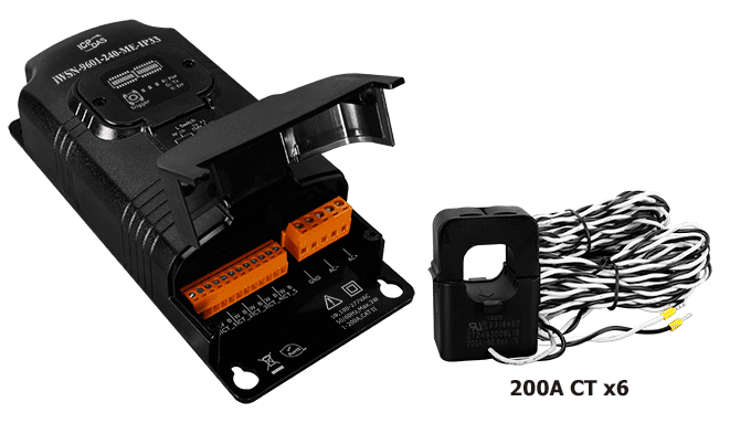 The ICP DAS iWSN-9601 series module is a single-phase AC power meter, which provides one single-phase voltage input and 6 current CT inputs, and suits measuring the power information of different equipment powered by the same AC source. By means of wireless communication and powering from the measured voltage cable, it can greatly reduce the cost and duration of installation, and satisfy to the demand of distributed deployment and quick setup. The iWSN-9601-240-ME-IP33 is iWSN Wireless single-phase 6-loop intelligent power meter with six 200A CT (inside diameter 24 mm; wire lead 8 m).