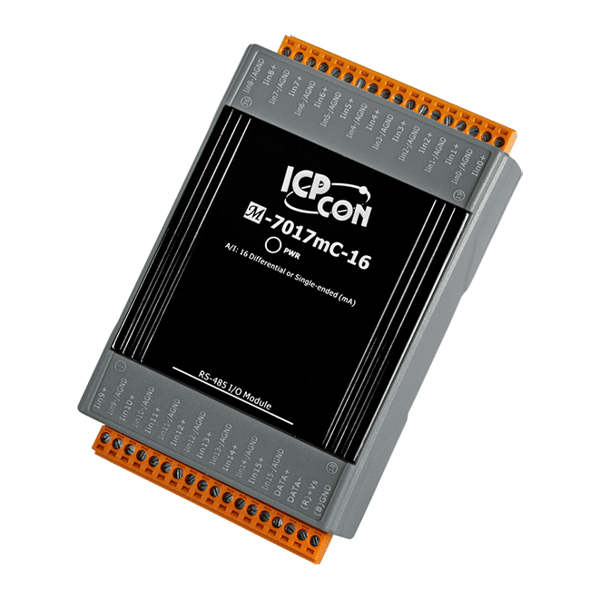 The ICP DAS M-7017mC-16 is a 16-channel current input module that is specifically designed to measure current only. Its user-friendly design saves both time and effort when measuring current thanks to built-in resistors, meaning that you can now measure current directly without adding an external resistor. The module also provides 4 kV ESD protection and 110 VDC overvoltage protection for the current input and features 3000 VDC intra-module isolation and open wire detection for 4 ~ 20 mA input.