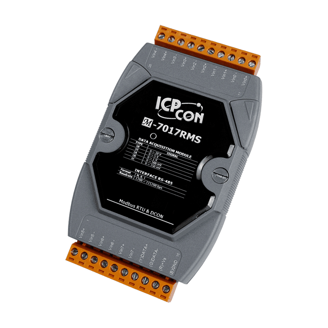 The ICP DAS M-7017RMS is an 8-channel differential AC input module that is used to convert the AC input signals to their True RMS DC values. The RMS input range can be from +150 mVrms to +10 Vrms, and each channel can be configured individually.