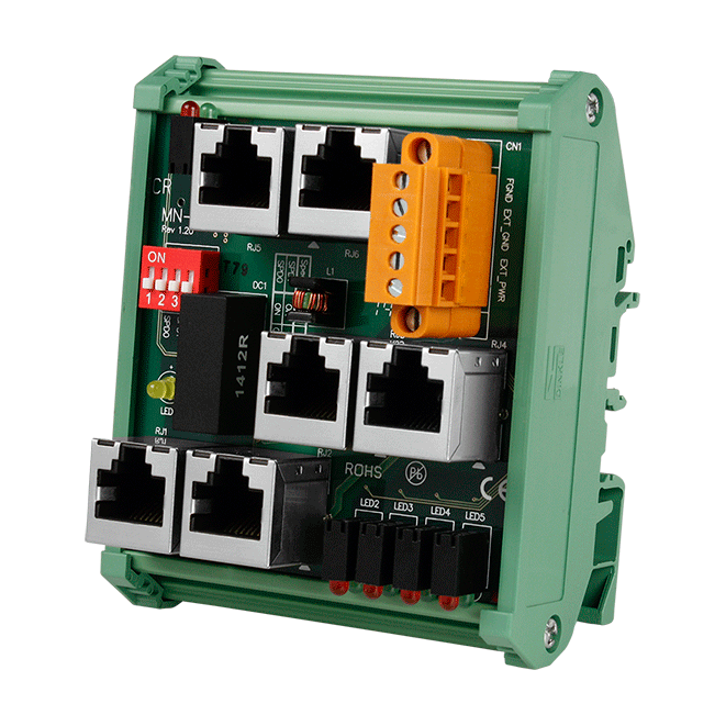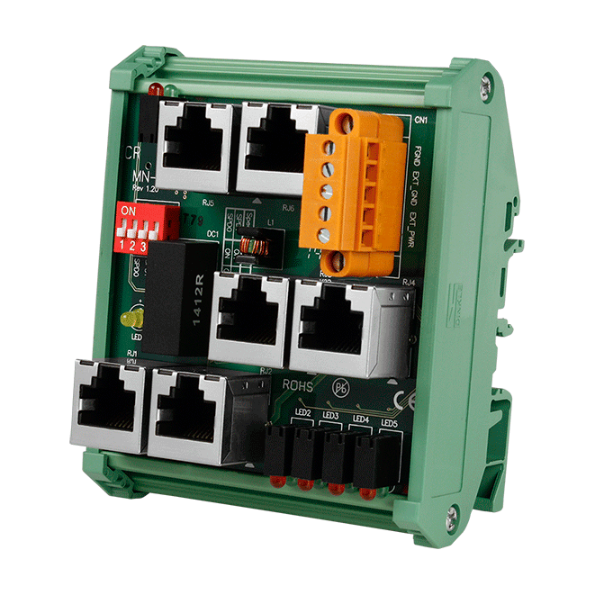In some user’s application, users may encounter some difficulty in wiring since the standard Motionnet only support daisy-chain topology. The MN-HUB4 module can help users to use star or tree topology during wiring which not only can make the wiring more easier but also reduce the total wiring distance and cost.