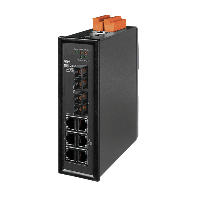 The ICP DAS MSM-508FC-T is an 8-port Industrial Ethernet Layer 2 Managed Switch with 2-Fiber Port that secures data transmission by using fiber optic transmission to provide immunity from EMI/RFI interference. It is perfect solution for applications where transmission must be protected from electrical exposure, surges, lightning or chemical corrosion.