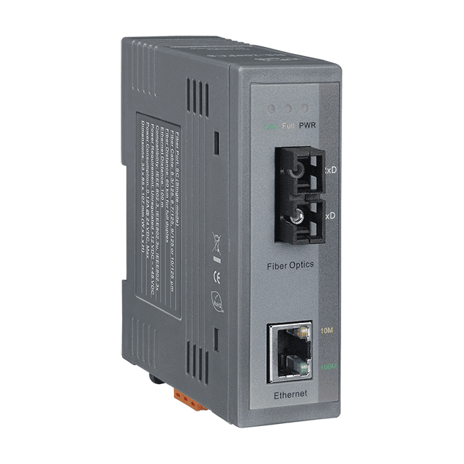 The ICP DAS NS-200AFCS-60T is a Ethernet (10/100 Base-TX) to Media (100 Base-FX) converter. The Ethernet supports 10/100M auto negotiation feature and auto MDI/MDI-X function. NS-200AFCS-60T can work normally from -30 ~ 75°C and accepts a wide voltage range from +12 ~ 48 VDC.