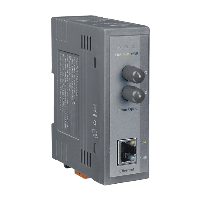 The ICP DAS NS-200AFT-T is a Ethernet (10/100 Base-TX) to Media (100 Base-FX) converter. The Ethernet supports 10/100M auto negotiation feature and auto MDI/MDI-X function. NS-200AFT-T can work normally from -30 ~ 75°C and accepts a wide voltage range from +12 ~ 48 VDC.