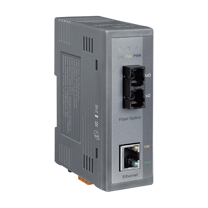 The ICP DAS NS-200AFC-T is a Ethernet (10/100 Base-TX) to Media (100 Base-FX) converter. The Ethernet supports 10/100M auto negotiation feature and auto MDI/MDI-X function. NS-200AFC-T can work normally from -30 ~ 75°C and accepts a wide voltage range from +12 ~ 48 VDC.