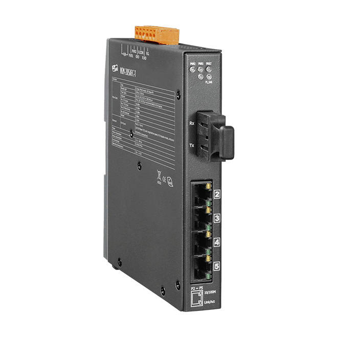 The ICP DAS NSM-205AFC-T is a 4-port unmanaged Ethernet with 1 fiber port switch. Using fiber optics, you can prevent noise from interfering with your system and supports high-speed (100 Mbps) and high-distance (up to 2 km) transmissions.