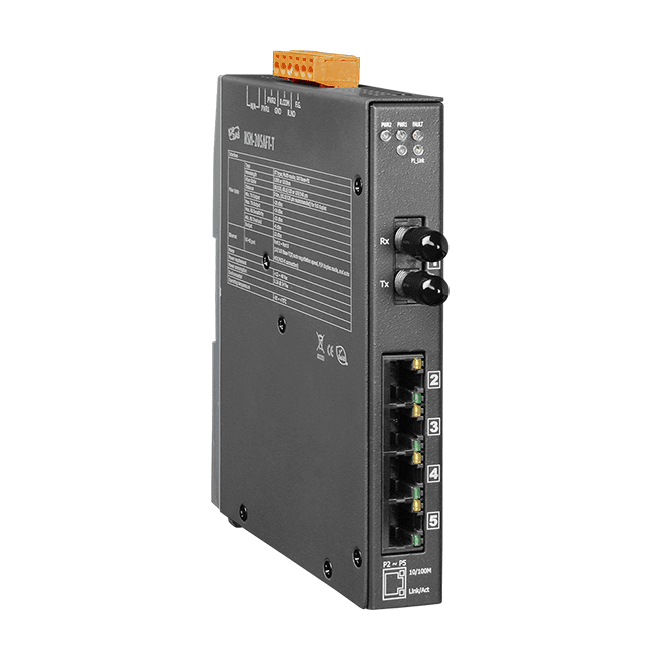 The ICP DAS NSM-205AFT-T is a 4-port unmanaged Ethernet with 1 fiber port switch. Using fiber optics, you can prevent noise from interfering with your system and supports high-speed (100 Mbps) and high-distance (up to 2 km) transmissions.