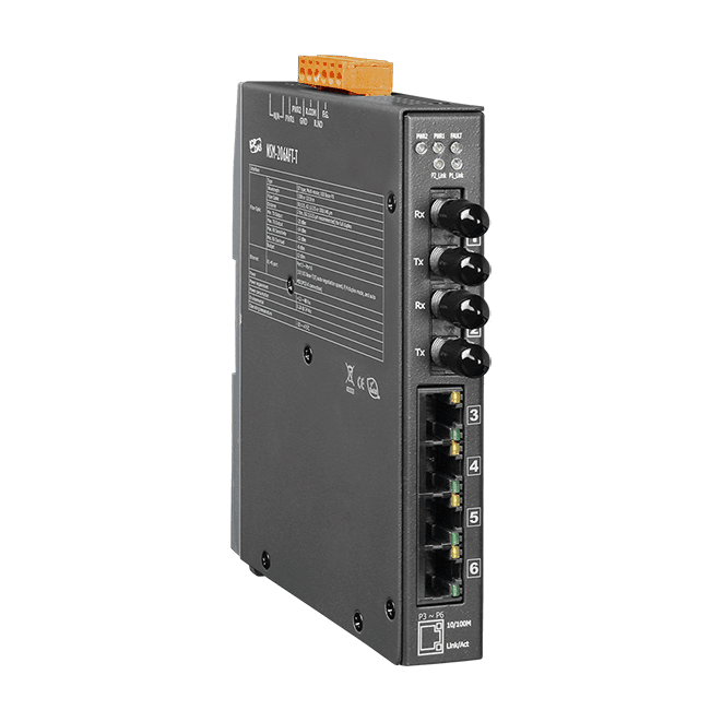 The ICP DAS NSM-206AFT-T is a 4-port unmanaged Ethernet with 2 fiber port switch. Using fiber optics, you can prevent noise from interfering with your system and supports high-speed (100 Mbps) and high-distance (up to 2 km) transmissions.
