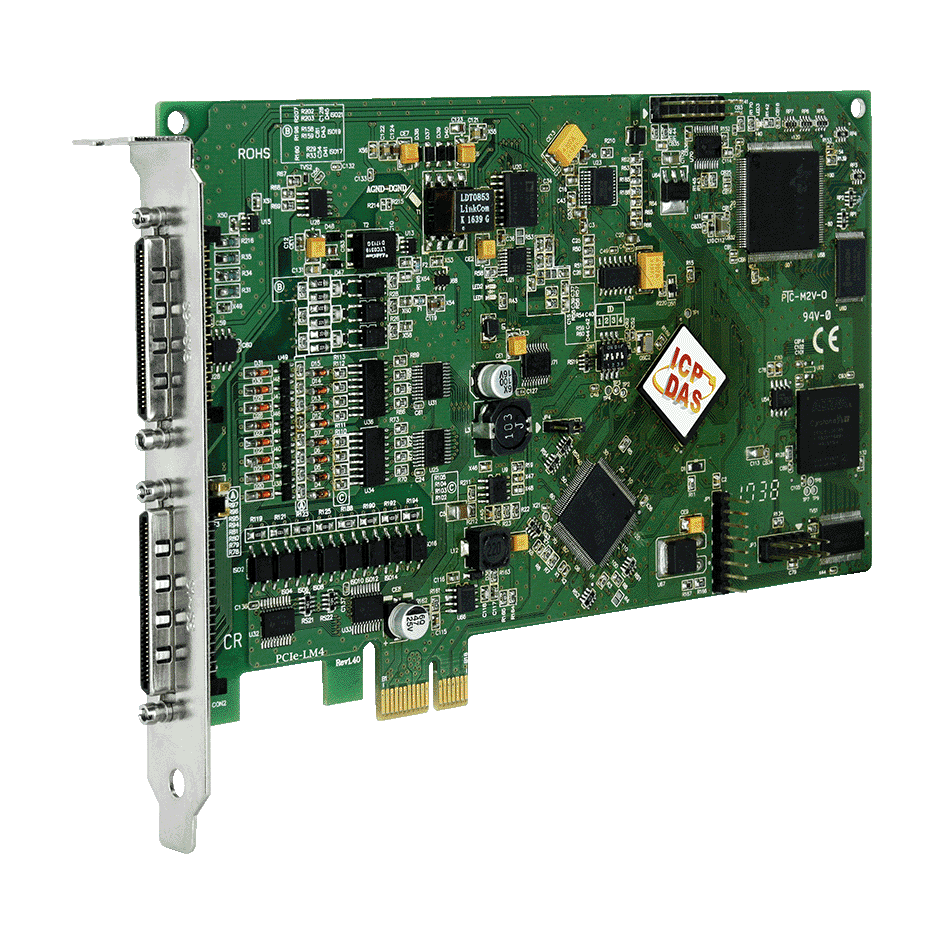 The ICP DAS PCIe-LM4 is a powerful multi-function board based on the PCI Express. Equipped with four Load Cell (strain gauge) input channels, four general analog input channels, a 2-axis motion controller, two analog output channels, sixteen isolated digital input channels and sixteen isolated digital output channels.