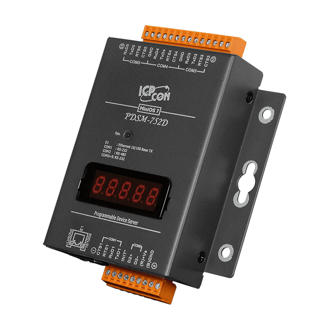 PDSM-752D Programmable (4x RS-232 and 1x RS-485) Serial-to-Ethernet Device Server with LED Display (Metal Case)