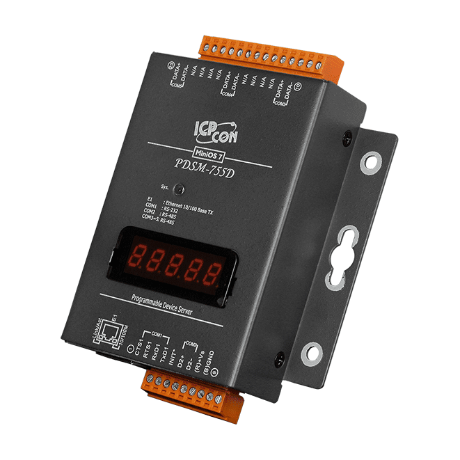 The PDS(M)-755(D) and PPDS(M)-755(D)-MTCP is equipped with 1 RS-232 port and 4 RS-485 ports. The removable on-board terminal block connector is designed for easy and robust wiring in industrial situations.