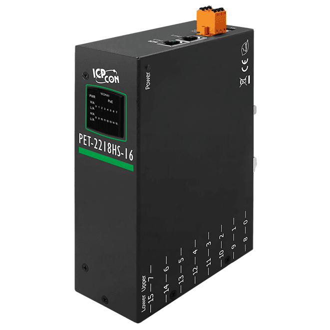 PET-2218H-16 POE I/O Module with 16-ch High Speed Thermocouple Input, Support Standard Thermocouple Connector