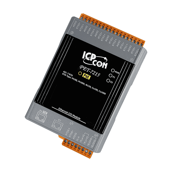 The ICP DAS PET-7215 is specifically designed for long-distance RTD measurement with Power-Over-Ethernet (PoE). It features automatic compensation for three-wire RTD regardless of the length of wires and provides open wire detection for RTD measurement.