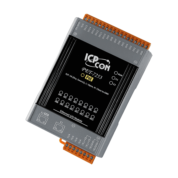 The ICP DAS PET-7253 provides 16 dry contact digital input channels with Power over Ethernet function. Each input channel can be used as a 32-bit counter. It features optical isolation for 3750 Vrms of transient overvoltage protection but doesn’t provide channel-to-channel isolation. It can safely be used in applications where hazardous voltages are present.