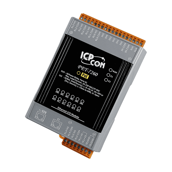 PET-7260 PoE Ethernet I/O Module with 2-port Ethernet Switch, 6-ch Power Relay & 6-ch DI