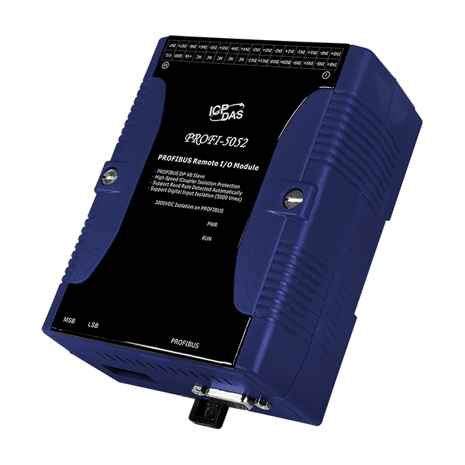 The ICP DAS PROFI-5052 is specially designed for the slave device of PROFIBUS DP protocol. This module supports up to 12-channel Isolated Digital Input. The PROFI-5052 offer users the flexibility to choose and configure this module via the GSD file in any PROFIBUS configuration.